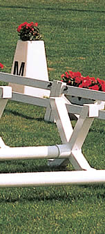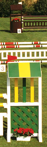 | Being able to enjoy an international ambience during training sessions spurs on - both the rider and the horse. Stability and weather resistance of the Top Notch obstacles guarantee their long-term longevity. This means that it also makes economic sense to invest a little more in a more expensive and more attractive training course and tournament course. In addition to the tried and tested Top Notch rail and support system, the well-developed range of accessories with its obstacle flags, obstacle barriers and obstacle numbers rounds off the product range in the best possible way. Of course, we also deliver the safety supports prescribed to be installed behind the oxers since the beginning of 2004 for all jumping tests. Use the excellent advantages of the complete Top Notch system: stability, lightness, weather resistance, and easy handling. |